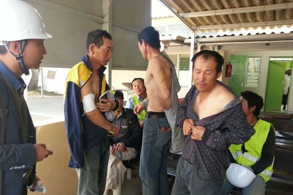 More than 200 youths, carrying clubs and sword youth descended on the workers, chanting and shouting.