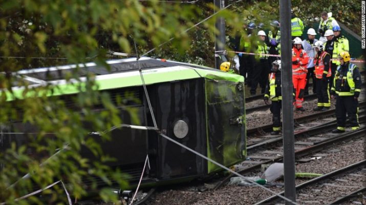 The tram derailed soon after 6 a.m. (1 a.m. ET) Wednesday near the Sandilands stop, east of Croydon town center, the police statement said.