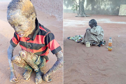 Baby Abshir was born normal but developed a rare skin condition that has left him crippled.