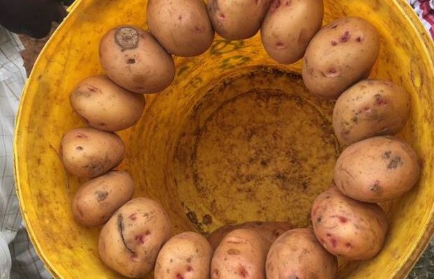 The vendors lace potatoes at the top of the buckets using super glue, creating an illusion of a full bucket whereas the bottom is empty. This scam is common along the Nairobi- Nakuru highway.