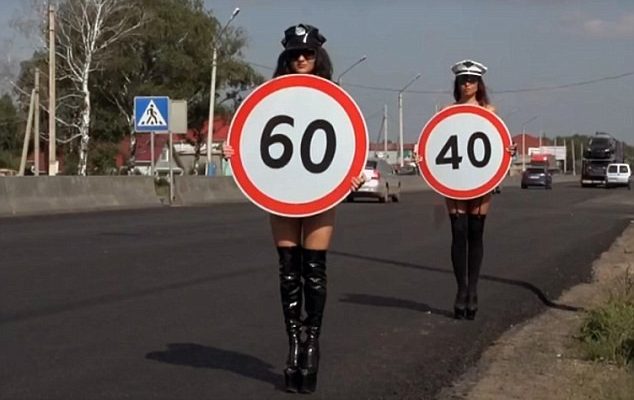 The tactic involves topless –near naked – women carrying speed limit signs, parading along the side of the road at accident blackspots.