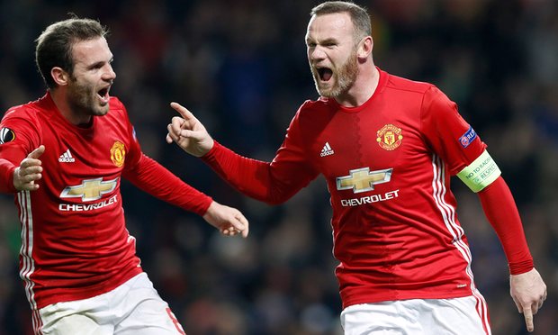 Manchester United remained in control of the club’s Europa League destiny with one group game to play as Wayne Rooney made history in a dominant 4-0 win over Feyenoord at Old Trafford.