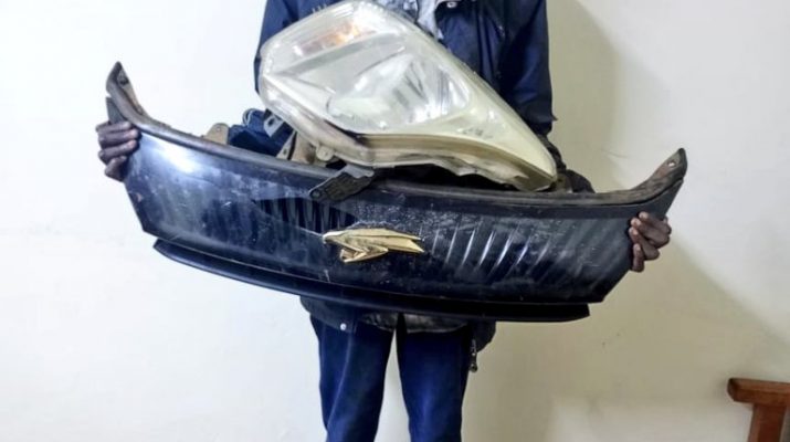 The suspect later emerged holding the front grid and headlight of a Toyota Harrier that was skilfully striped from the homeowner’s car. He was netted and marched to the station.