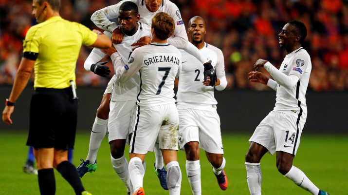 A searing first-half strike from Paul Pogba handed France a 1-0 win at rivals the Netherlands as Belgium and Portugal clocked up 6-0 victories and Christian Benteke grabbed a slice of World Cup qualifying history.