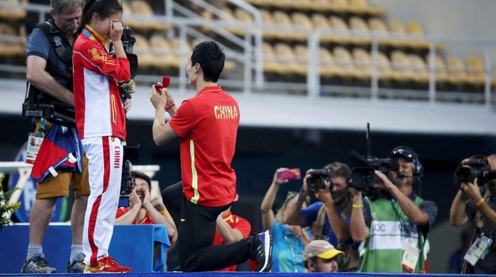 He ended up with another prize when her boyfriend Qin Kai, in front of a global TV audience, went down on one knee to present himself to her in a marriage proposal at Rio.
