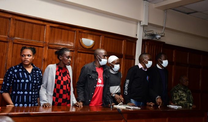 The six convicted persons are Erick Munyera, Raphael Kimani, Mustafa Kimani, Stephen Asitiva, Jane Wanjiru and Margaret Njeri.