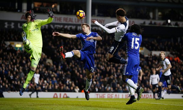 Spurs moved up to third place as headers from Dele Alli either side of half-time made the difference to leave Chelsea five points ahead of Liverpool in second place.