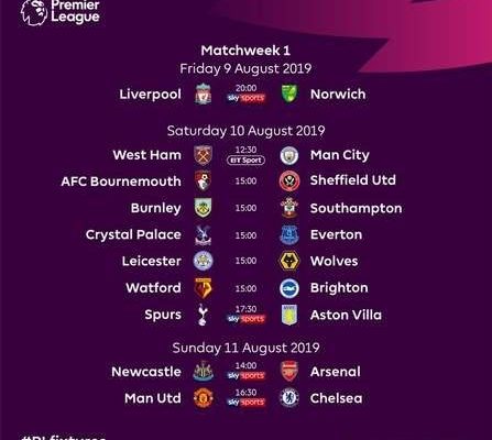 By Kelvin Kirwa The 2019-20 Premier League season will start with Champions League winners Liverpool hosting promoted Norwich City on Friday, 9th August. Champions