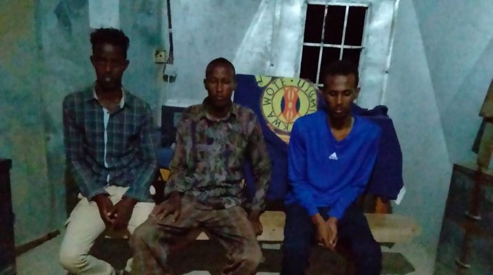 Three terror suspects have been arrested in Lagdera, Garissa County while in possession of illegal weapons; eight AK-47 riffles, 2,004 bullets, 8 magazines and 20 litres of petrol.
