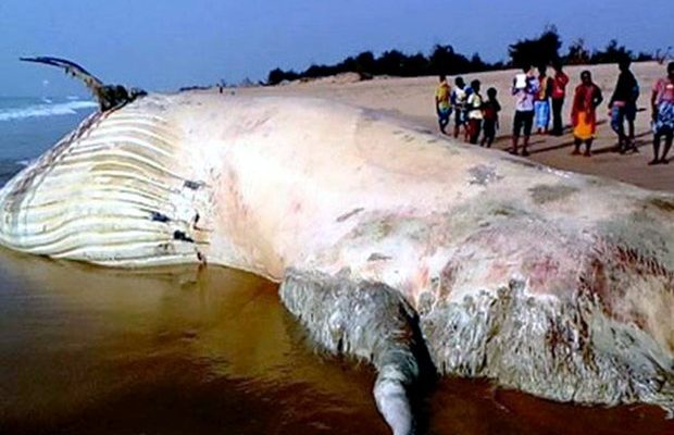 Stunned beach-goers found the huge carcass — which is a whopping 42 feet long and 28 feet wide — on the shore in Baidhara Pentha in east India.